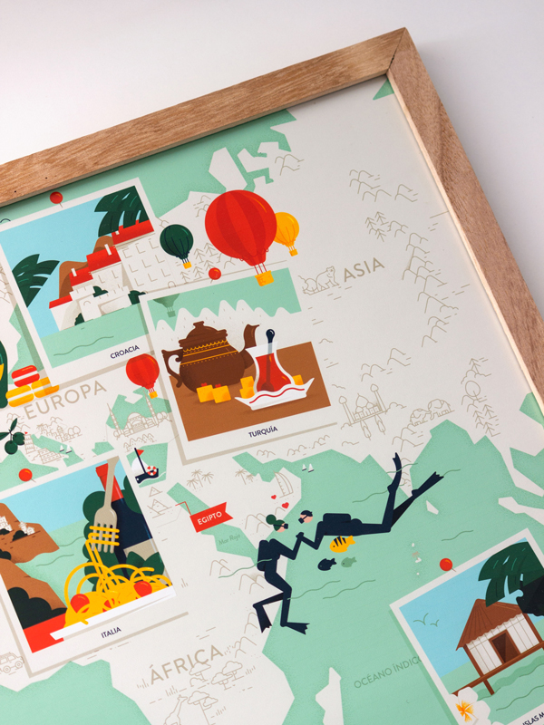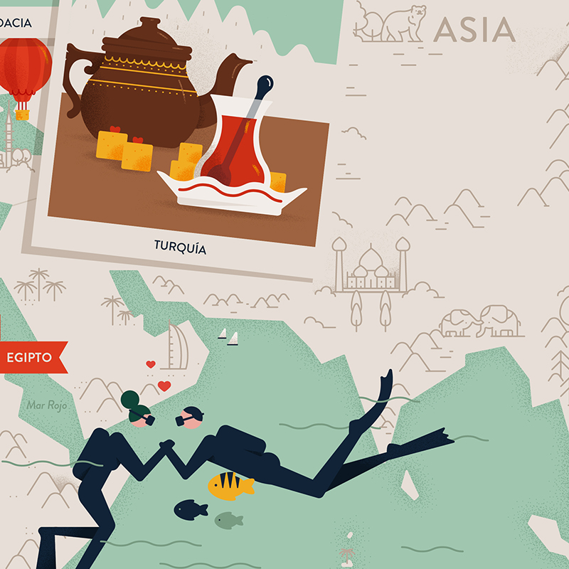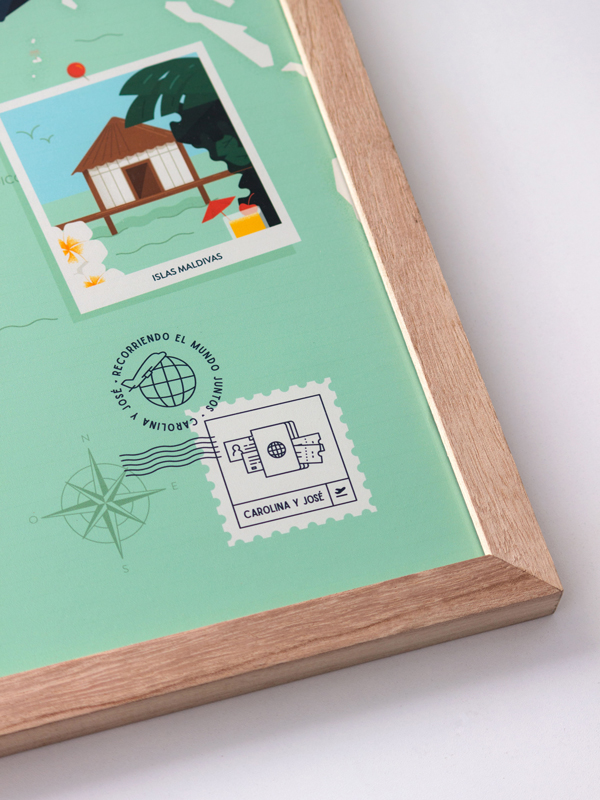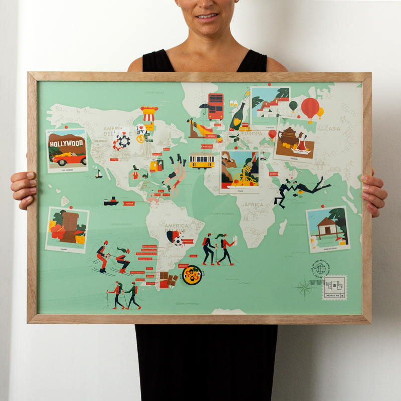 José quería estaba buscando hacerle un regalo especial a su pareja, que no hubiera otro igual!. Cuando vio el mapa que ilustré para Lautaro se le ocurrió encargarme un mapa ilustrado con los viajes hechos juntos! ❤️. Armamos el listado de los lugares, las actividades hechas juntos e incluso me contó algunas anécdotas y pormenores de vestuarios, para incorporar guiños a esos detalles y hacerlo aún más personalizado y único!. Un proyecto que me llevó a investigar, conocer nuevos lugares y atracciones para visitar y actividades para hacer alrededor del mundo 🌎.