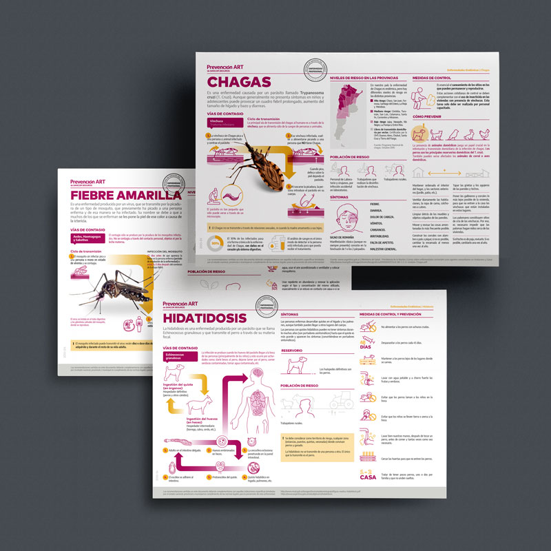 Además se desarrollaron piezas infográficas sobre las enfermedades endémicas de nuestro país. También íconos para la nueva web de la empresa y para su aplicación,.