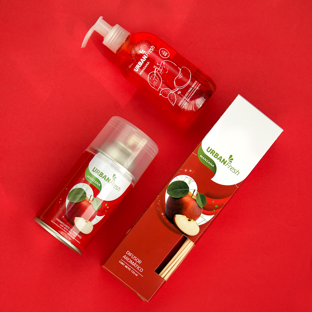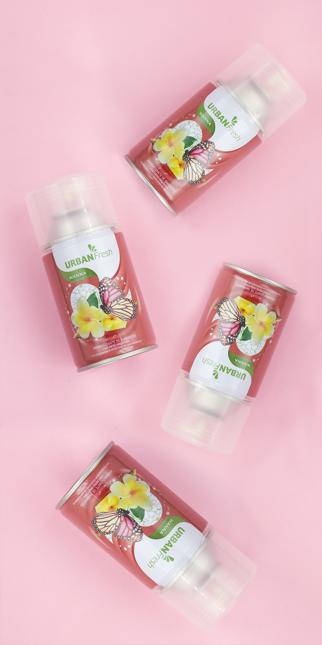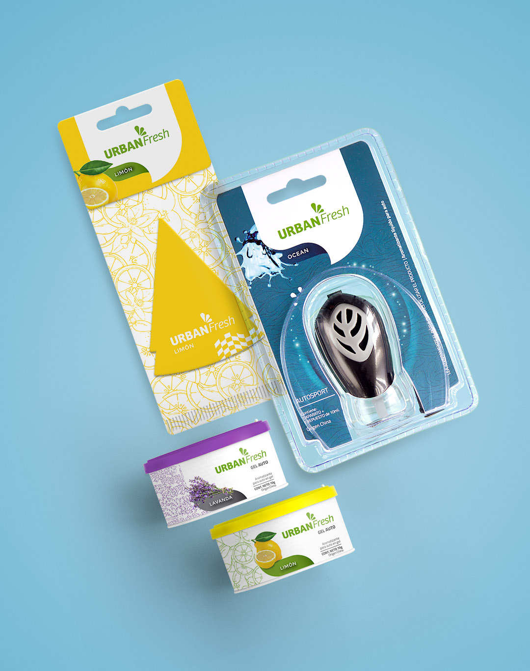 Desarrollo de identidad, sistema de packagings y fotografía de productos para toda la línea de aromatizantes de Urban Fresh.