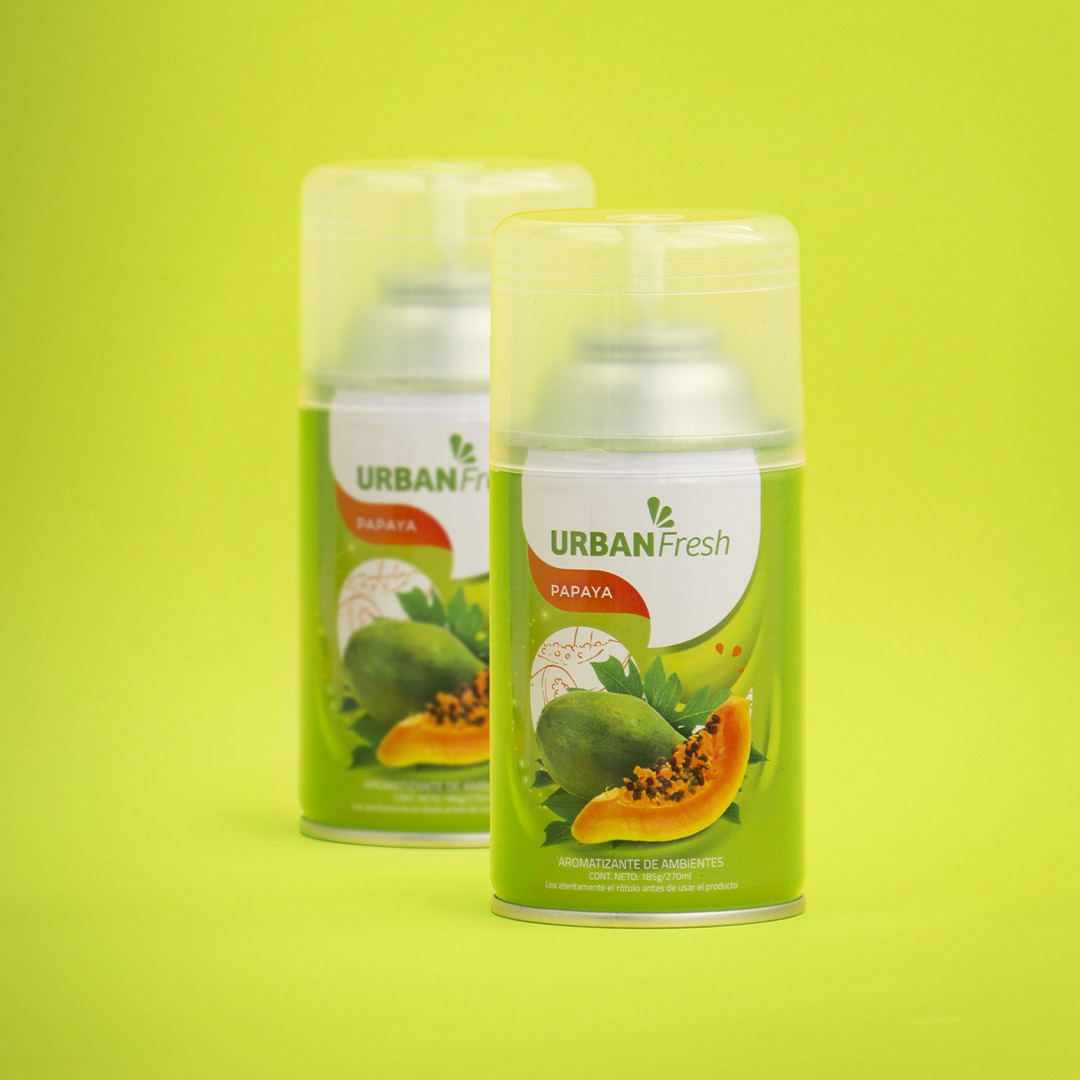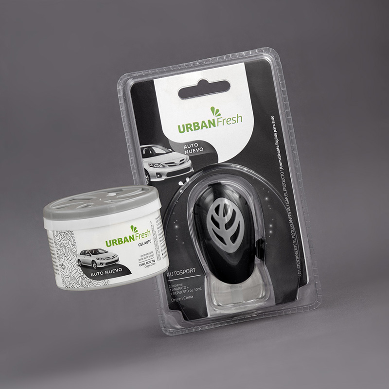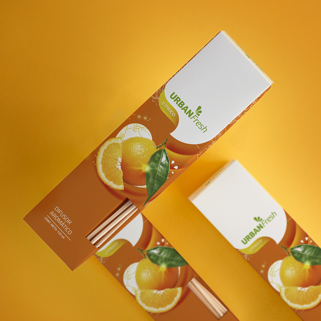 Desarrollo de identidad, sistema de packagings y fotografía de productos para toda la línea de aromatizantes de Urban Fresh.